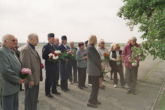 Einmal im Jahr treffen sie sich hier, um auf dem im Flughafengelände aufgestellten Ehrenmal Blumen abzulegen und ihrer verstorbenen Kameraden zu gedenken.